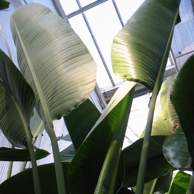 Strelitzia nicolai - Giant strelitzia, with vivid green leaves, and big flowers with original white-blu-black color.