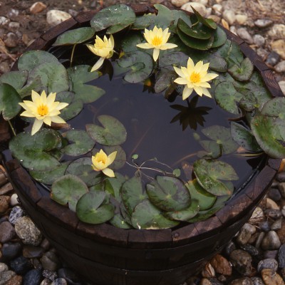 Nymphaea Pygmaea Helvola - Dwarf water lily. One of the smallest variety all around teh world. Free-flowering variety. Ancient variety created by the french hybridizer Bory Latour-Marliac in 1879.