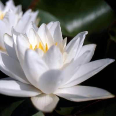 Nymphaea Gladstoneana. Large water lily. In large pond it is one of the biggest variety with pure white large flowers of 20-25 cm. Ancient variety created by the hybridizer George Richardson, in 1897.