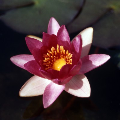 Nymphaea Ellisiana. Small water lily. Free-flowering can grow well in tub too. Ancient variety created by french hybridizer Bory Latour-Marliac in 1896.
