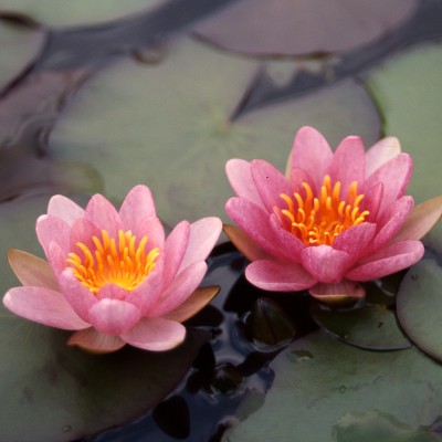 Nymphaea Laydekeri Rosea Prolifera. Small water lily. Free-flowering and vigorous ancient variety created by french hybridizer Bory Latour-Marliac in 1893.