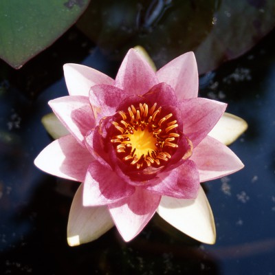 Nymphaea Madame Maurice Laydeker - Medium water lily. Ancient and free-flowering water lily with original color flowers, created by the french hybridizer Bory Latour-Marliac.