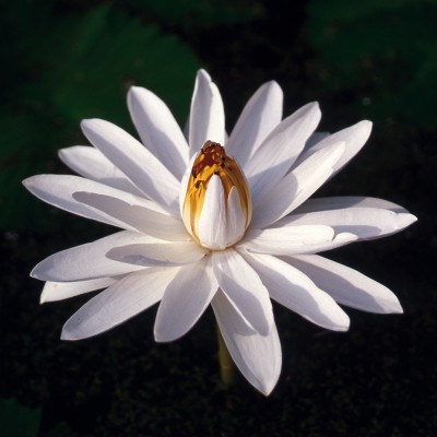 Nymphaea Missouri - Tropical night-blooming water lily. Very big flowers rise above the water. Very beautiful deep shining green leaves. Vigorous and prolific variety, it's easy to overwinter.