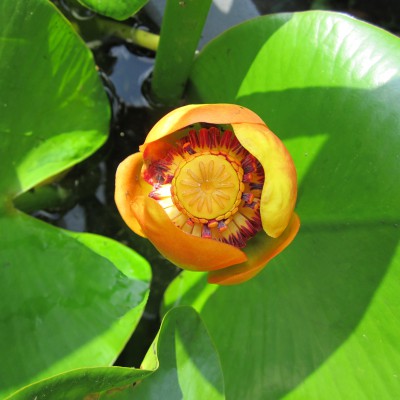 Nuphar lutea ssp macrophylla. Nenufaro gigante americano. Nenufaro gigante, il più grande del suo genere. Ha i fiori e le foglie più grandi di tutti gli altri nenufari. Le foglie possono superare i 30 centimentri e crescono sopra l'acqua anche di 50 centimetri e più.