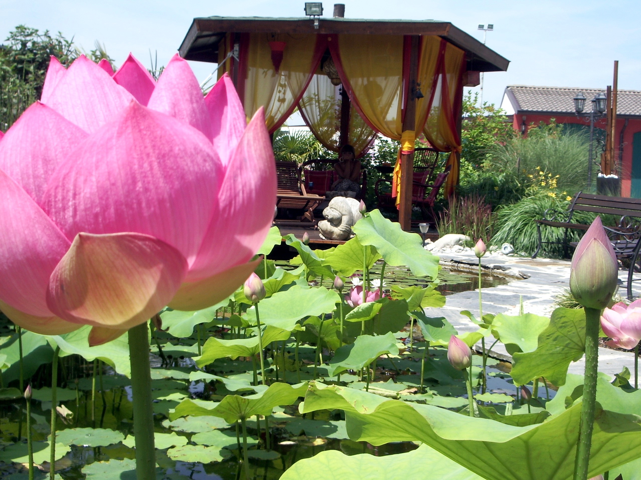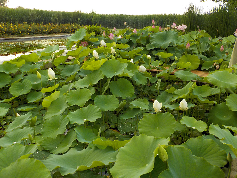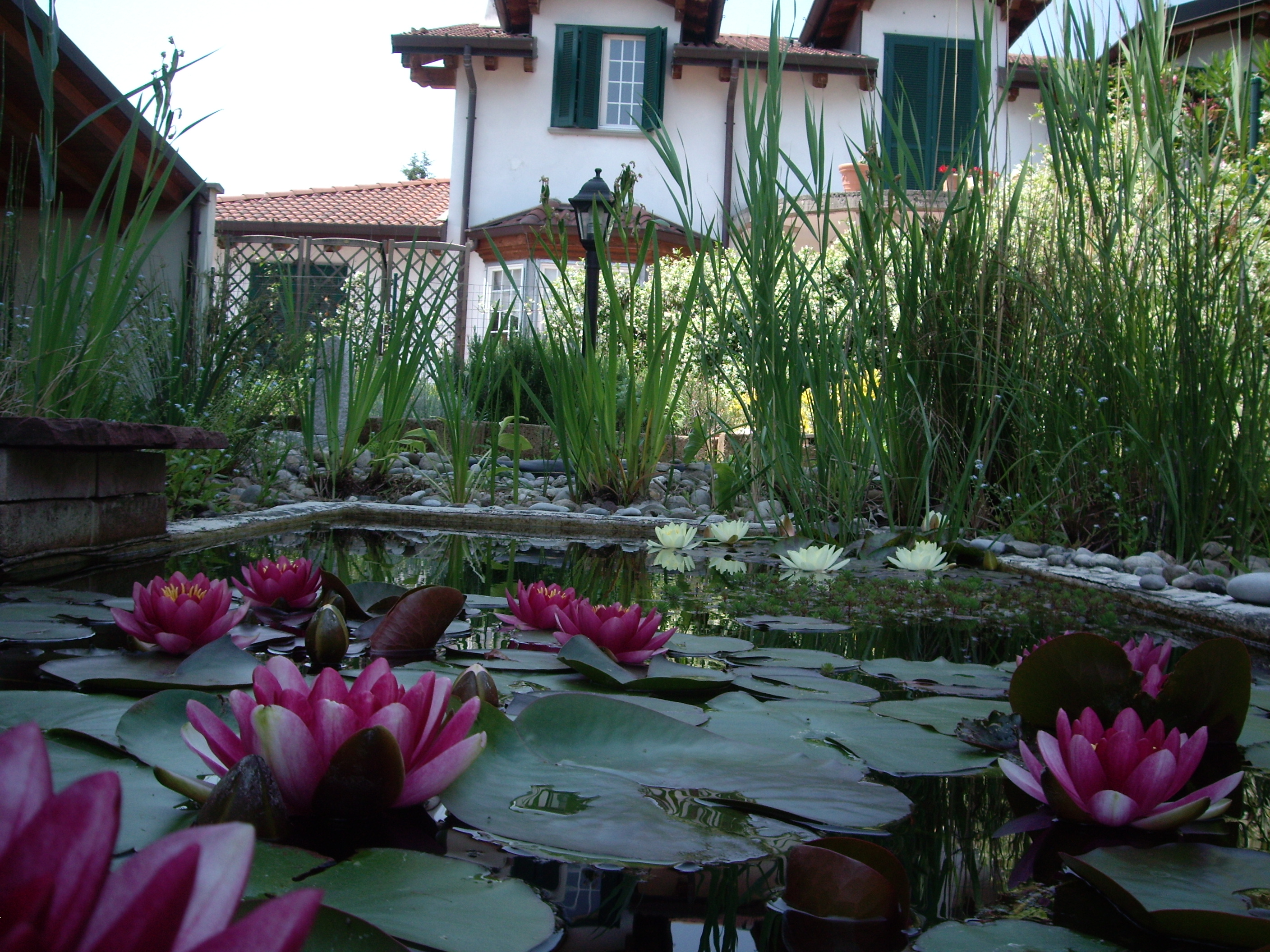 Lotus flowers and water lilies, aquatic and marsh plants, floating and oxygenating plants coexist in an ecosystem where fish and microorganisms essentially produce "food" (in the form of "pollutants", mineral salts and carbon dioxide), and the plants that grow thanks to the absorption, and therefore purification of these natural fertilizers, give the aquatic ecosystem clean and oxygenated water.