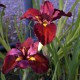 Iris louisiana Red Velvet. American rare giant Iris with deep red-purple flowers.
