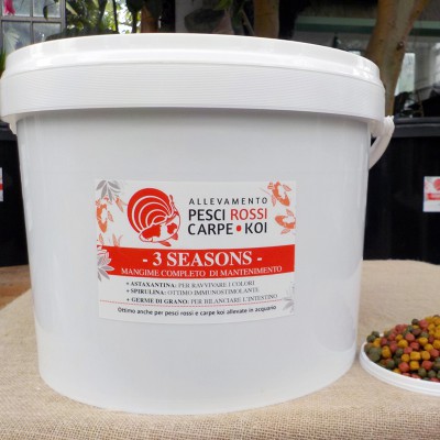3 SEASONS - Granular food - 6 mm - 10 lt/4200 gr. Ideal for goldfishes and koi too, on Spring, Summer and Autumn.