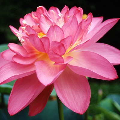 Nelumbo Rosea Plena. Large lotus with double red-pinkish flowers.