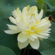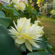 Nelumbo Hegemon King Gown - Medium lotus. Free-flowering in pot too, with double cream flowers.