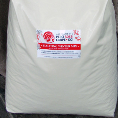FLOATING WINTER MIX. Mangime galleggiante in granuli rotondi - ø 4mm - Sacchetto da 2 kg. Ideale per il perido invernale con temperature fra i 5 ed i 10 °C. Per pesci rossi e carpe koi.