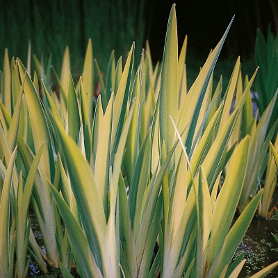 Iris pseudacorus Variegata. Varietà dai fiori giallo oro, più intensi della specie, con bellissime foglie variegate di giallo soprattutto in Primavera.